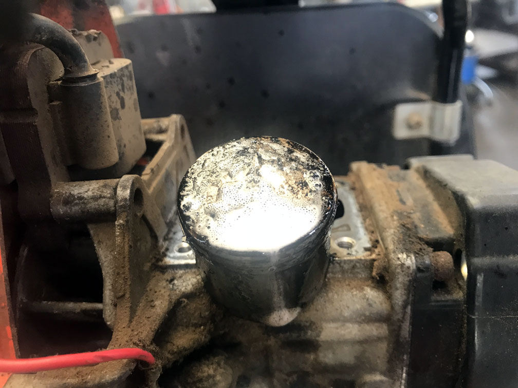 ピストンはシリンダー内で上下運動をしていますが、この異物のせいで隙間が無くなり、ピストンが一番上に上がった時にシリンダーと干渉していたのです。