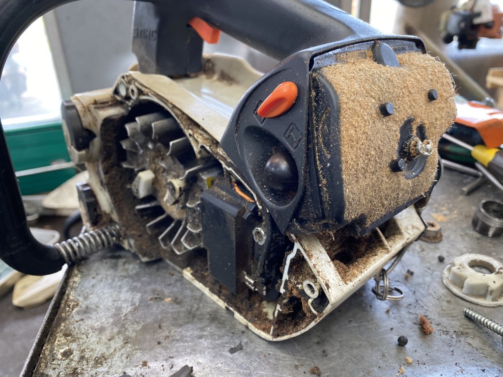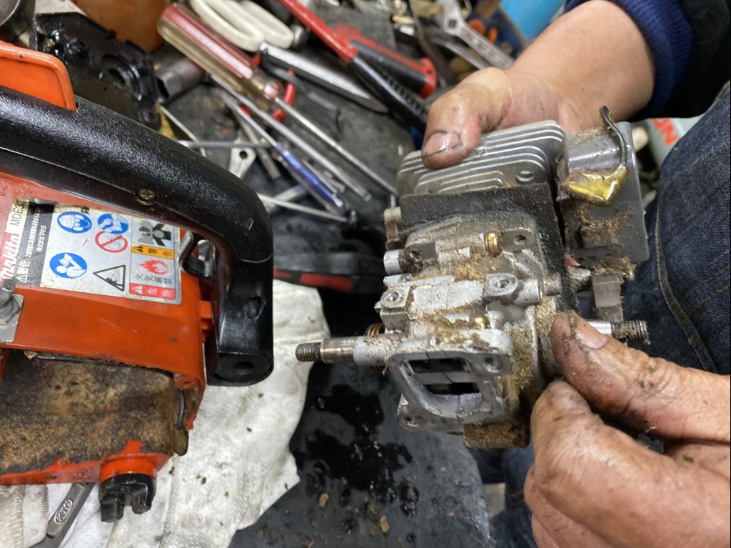 チェンソー、始動するが回転上がらず。インレットスクリーン(キャブ内部)の汚れ