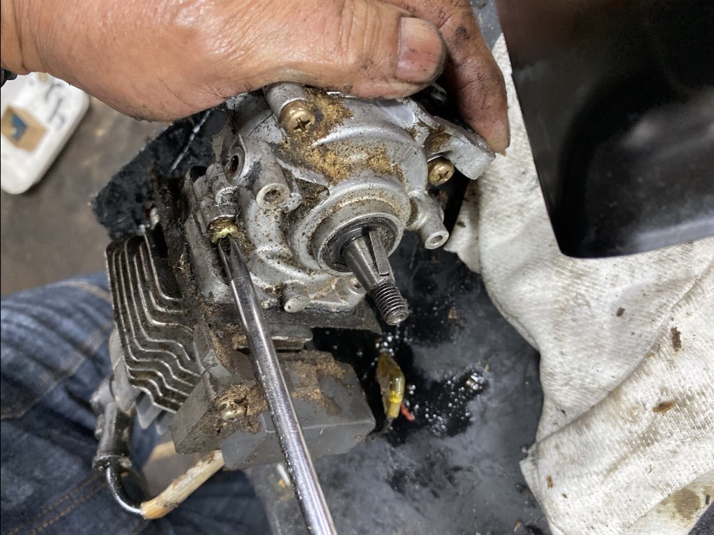 たしかに調子悪いです。燃料系統だと思いキャブレターを分解してみると、メタリングダイヤフラムの劣化が著しい状態でした。キャブレターの洗浄後に新品のダイヤフラムを取り付け組たてました。