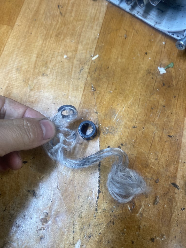 ニードルベアリングも破損していました。社長様は「軽く当たっただけと聞いたけどなぁー」 とおっしゃいますが、がっつりだと思われます。防護ズボンを履いていなければ相当怪我を負われていた事でしょう。防護ズボンって凄いですね。防護ズボンの機能や防御する仕組みについてはモンベルさんの動画等をYoutubeでご覧になると分かりやすいと思います。