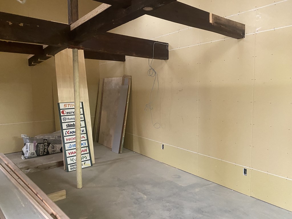 現在店舗の改装中ですが、昨日に床のコンクリート打ちが終わり、年明けに壁のシート張りや電気工事、看板工事の予定です。お客様には今しばらくご不便をおかけいたしますがご協力の程よろしくお願い致します。