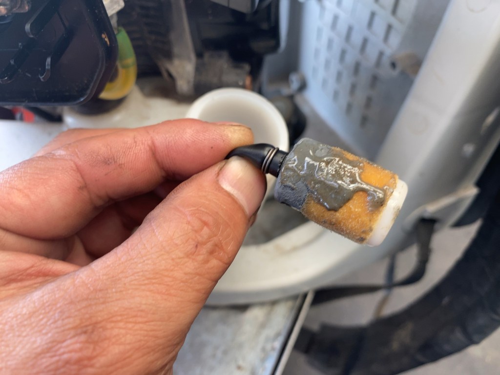 たまたま混合燃料を吸い上げた時は調子よく動いて、水(異物)が燃料ホースに入った時はエンジンが動かない。当然の話でした。