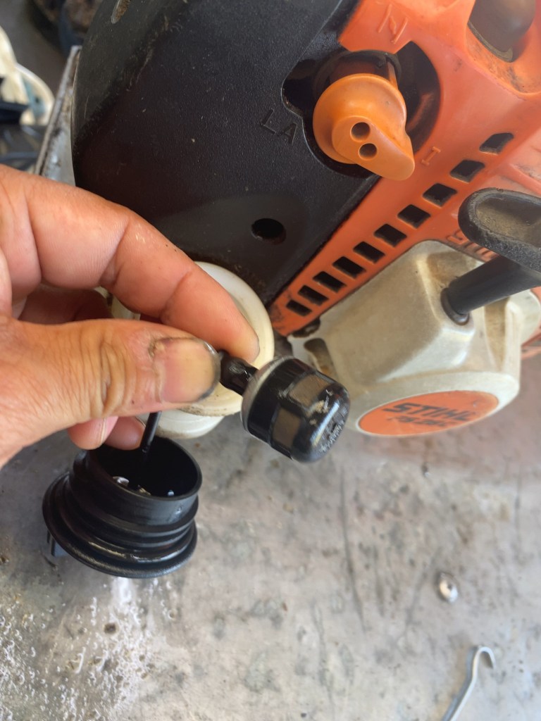 何故タンク内に水が入ったのか。おそらく雨天時に草刈り作業を行い、その時に給油されたのではないかと思います。