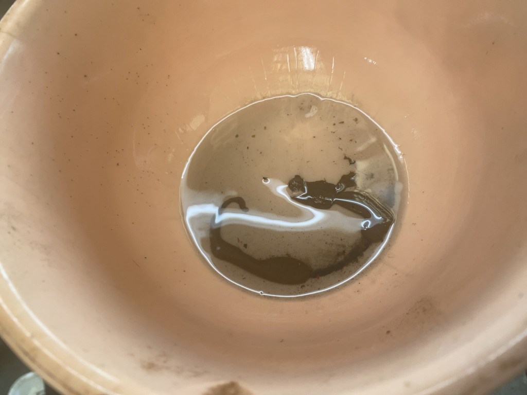 液体の中に溜まっていもの、水です。タンク内に水が溜まっていたのが不調の原因でした。ピックアップボディー(燃料フィルター)の汚れも酷いです。