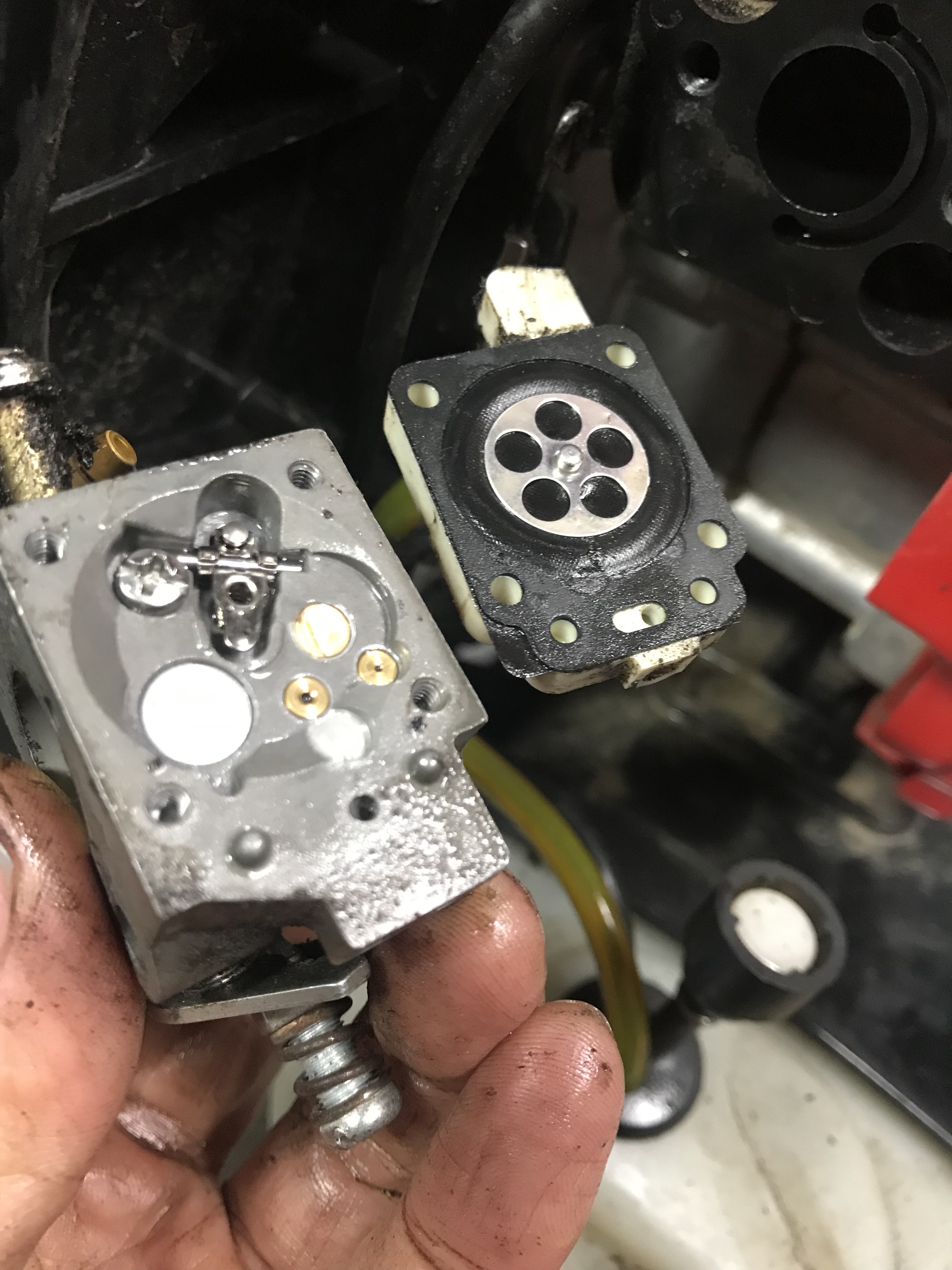 内部の汚れ具合や、ポンプダイヤフラムもメタリングダイヤフラムも問題なさそうなのでそっととじました(笑)いえ、これ以上メンテナンスをするとキャブレター分解洗浄代としてそれなりの修理代を頂く事になりますので。。